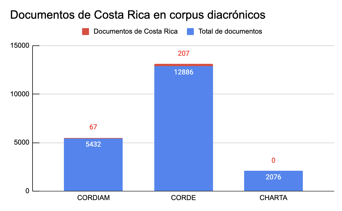 Figura 1: Documentos de Costa Rica en corpus diacrónicos (según datos de octubre de 2023)2