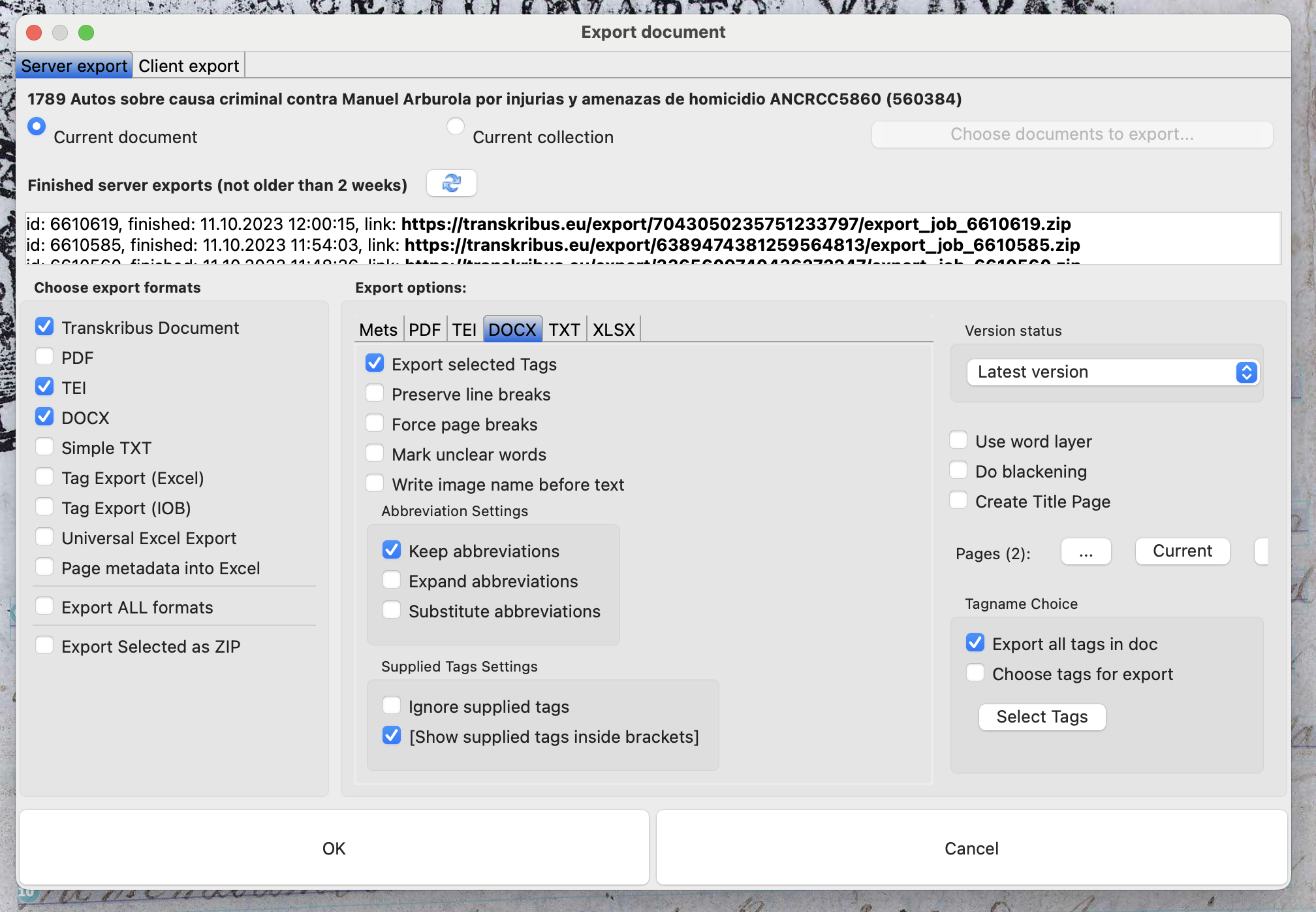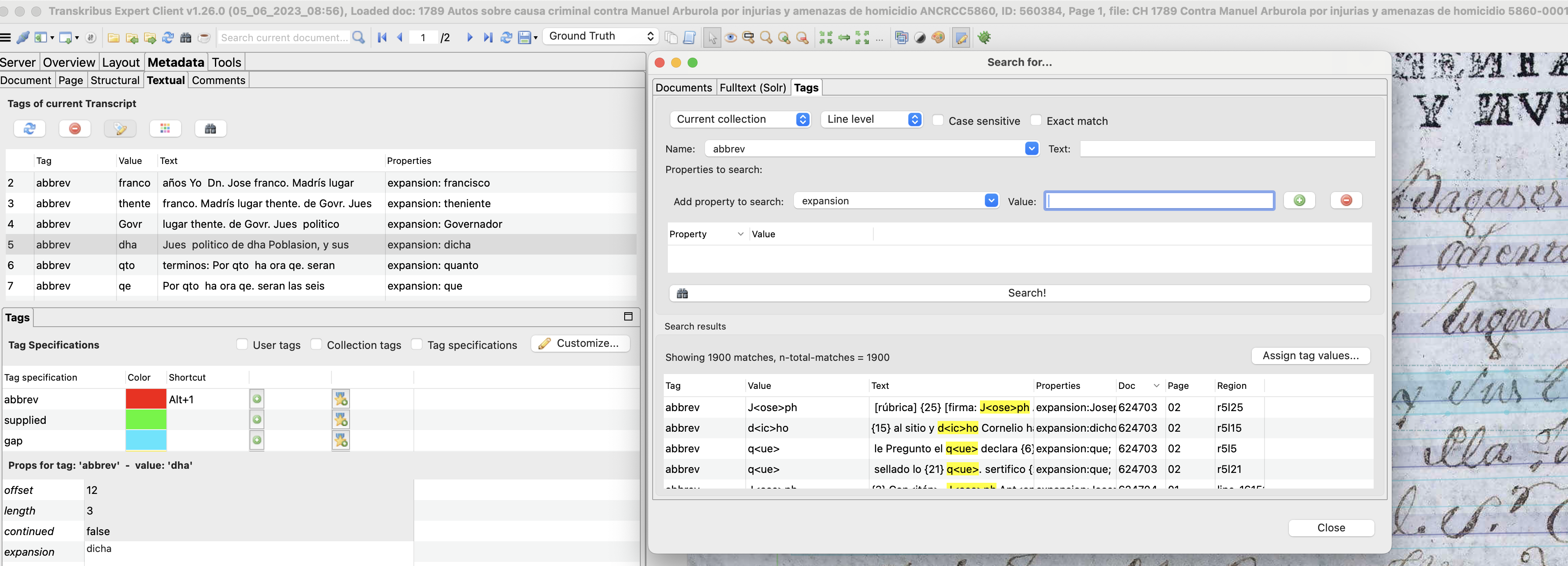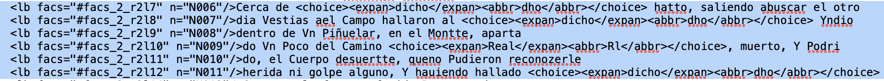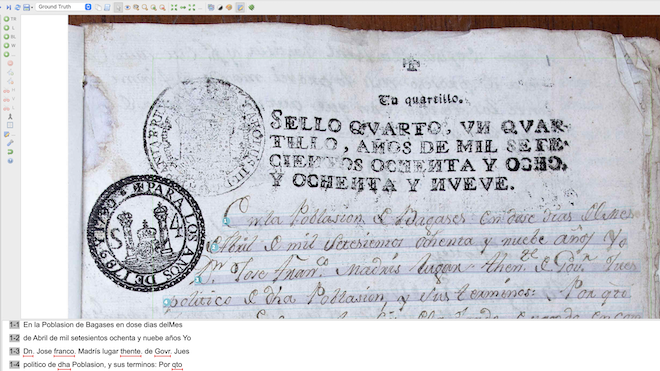 [35] Puesto que el trabajo de transcripción se ha realizado con Transkribus, poco a poco se ha ido aumentando la cantidad de materiales necesarios para el entrenamiento de un modelo de reconocimiento automático con la tecnología que ofrece esta plataforma. Además, como los textos se han enriquecido con el etiquetado de Transkribus, esta información, sobre todo la del desarrollo de abreviaturas, también puede aprovecharse para el entrenamiento de un modelo con etiquetas. De nuevo, no se trata de un esfuerzo aislado, sino que este trabajo puede ser aprovechado por proyectos como el de Unlocking the colonial archive, ya sea para enriquecer los modelos que allí se están desarrollando o para la creación de un modelo basado en los que ya existen.